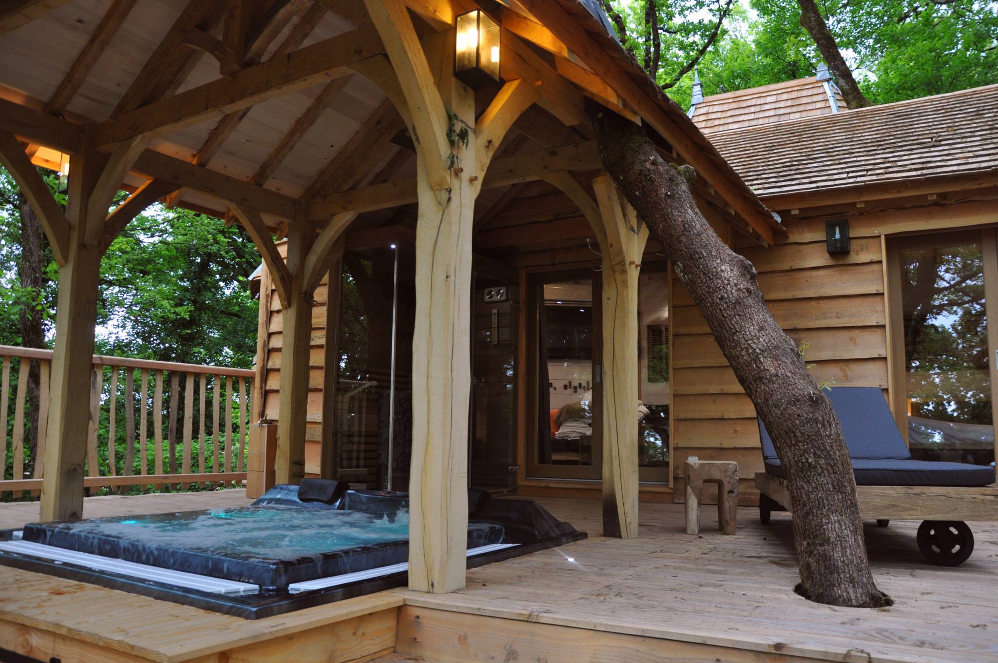 Cabane Puybéton at Châteaux Dans Les Arbres is a luxury treehouse with 1 bedroom, fireplace, spa bath and sauna. | www.facebook.com/SmallHouseBliss