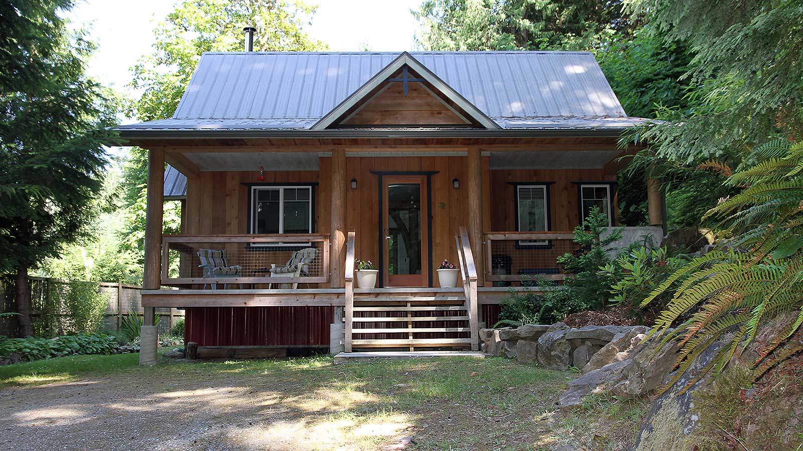 Birds' Hill Cottage is nestled in the rainforest on BC's Salt Spring Island. It has a ground-floor bedroom plus a large bedroom loft in roughly 800 sq ft. | www.facebook.com/SmallHouseBliss